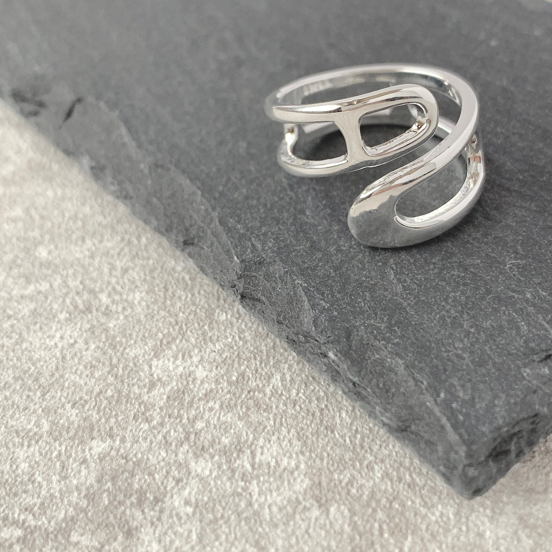 遊びのあるデザインで手元に動きをプラスしてくれるデザインリング